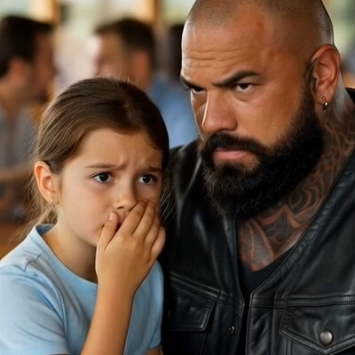 El motociclista, un hombre rudo apodado 芦Oso禄, sinti贸 c贸mo la sangre se le helaba al escuchar la confesi贸n de la peque帽a. Intercambi贸 una mirada r谩pida con sus compa帽eros, quienes de inmediato dejaron de beber y se tensaron, listos para la acci贸n. Oso puso una mano protectora sobre el hombro de la ni帽a, ocult谩ndola parcialmente tras su enorme figura. El motociclista le dice que tranquila, que ellos se encargar谩n, mientras hac铆a una se帽al discreta a los dem谩s para que bloquearan la salida principal y la cocina. El ambiente en el restaurante cambi贸 de golpe; el ruido de los ventiladores parec铆a ahora el rugido de una tormenta inminente.